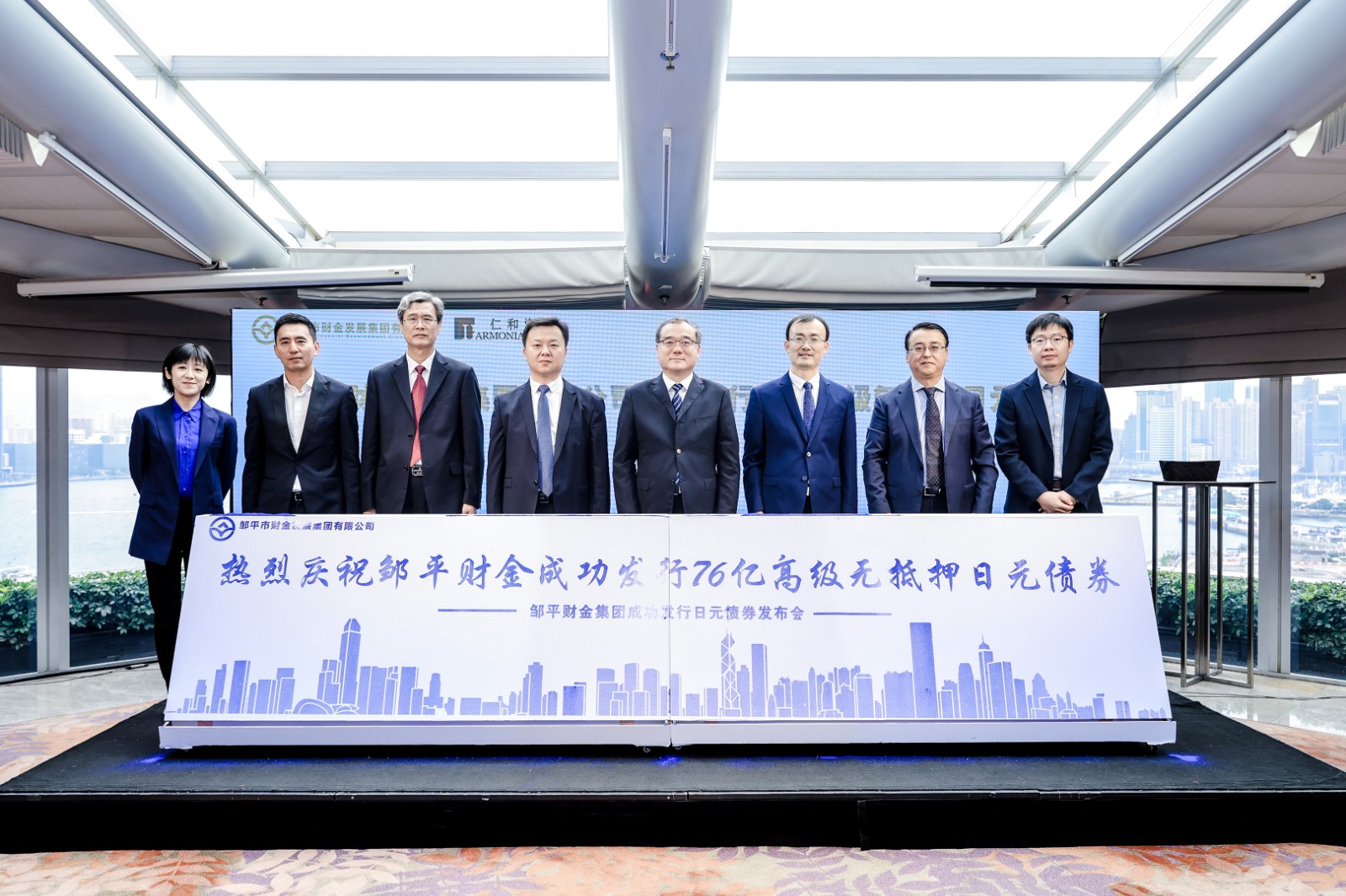 10月25日,邹平财金集团境外债券发行推介会暨邹平财金集团成功发行日元债券发布会在香港举行。邹平市委书记吕明涛为邹平财金集团成功发行日元债券揭牌并见证邹平财金集团与仁和资本有限公司签订战略合作协议。债券发行相关机构仁和资本有限公司、中国银河国际证券(香港)有限公司、金奥证券有限公司、中诚信(亚太)信用评级有限公司等作为嘉宾参加。