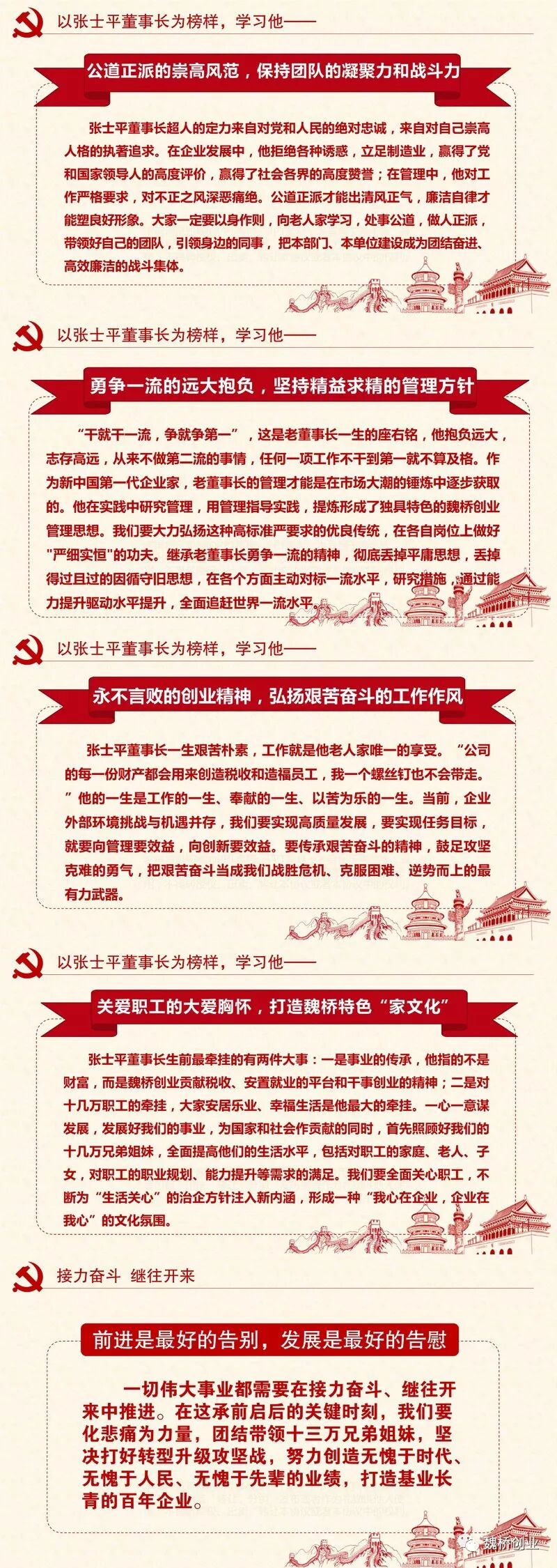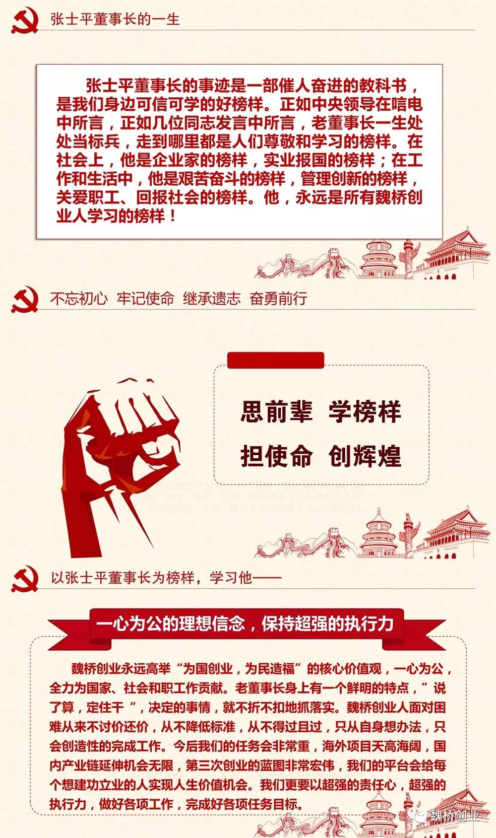 近日,中共中央做出部署,在全党上下开展“不忘初心、牢记使命”主题教育活动。对于这近日,中共中央做出部署,在全党上下开展“不忘初心、牢记使命”主题教育活动。对于这次主题教育,习近平总书记提出了“守初心、担使命,找差距、抓落实”的总要求。魏桥创业集团作为中国民营企业的一面红旗、作为中国民族工业的代表性企业,在追思老董事长张士平同志的特殊时刻,把主题教育总要求与对张士平同志的追思缅怀结合起来,与企业当前的生产经营管理结合起来,忆初心、找差距,定措施、压责任。