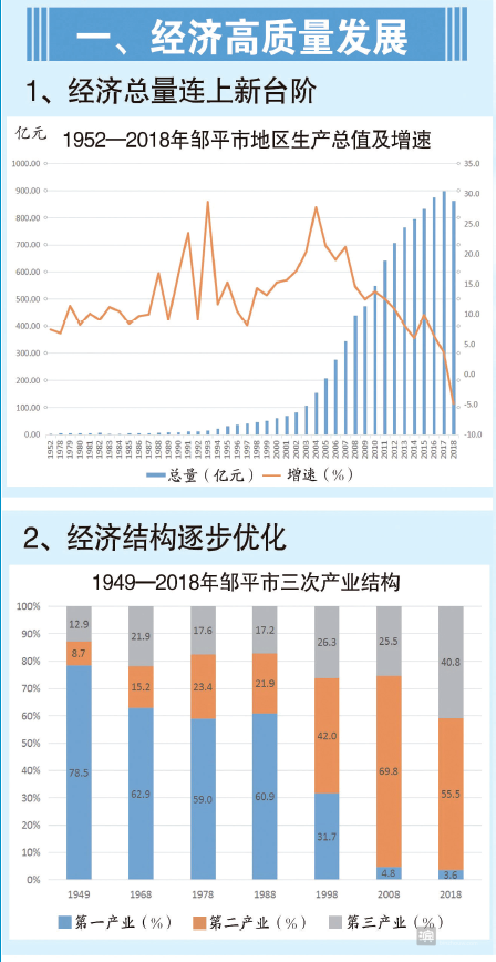 新中国成立70年以来,历届邹平市委、市政府带领全市人民自力更生,艰苦奋斗,励精图治,锐意改革,走过了艰难曲折的发展道路,取得了前所未有、令人鼓舞的巨大成就。