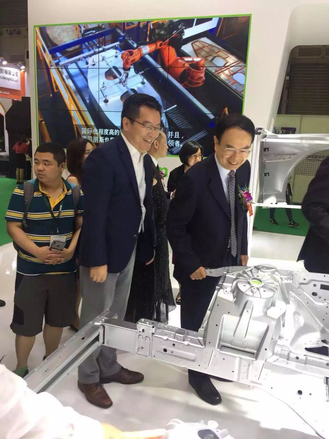揭幕仪式结束后,陈全训、敖宏等相关领导参观了展会。在参观期间,铝、镁、复合材料等材料在汽车轻量化的最新应用成果、新型美观的铝制家具、铝燃料电池、搅拌摩擦焊等新颖和先进的展品和设备吸引了陈全训一行人的目光,在展品前长时间驻足,进行了详细的问询和关注,并表示了赞许。![]()